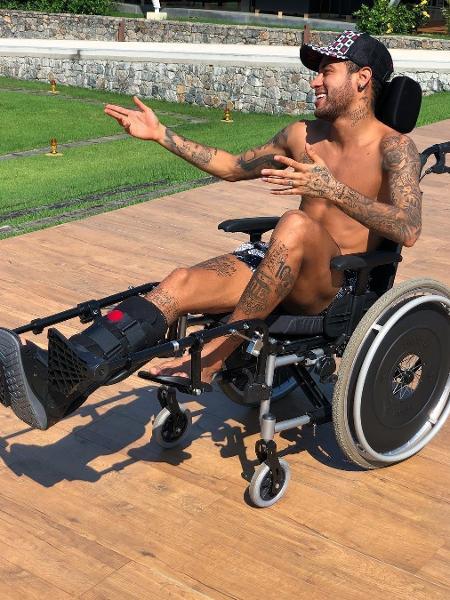 O craque do Paris Saint-Germain publicou uma foto, em que aparece ainda na cadeira de rodas, devido à cirurgia para corrigir uma fissura no quinto metatarso do pé direito que aconteceu durante um jogo, e usou uma frase famosa de Hawking.
