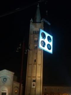 Il programma degli eventi dell'ultimo dell'anno ha richiamato parecchie persone. C'era tanta curiosità per lo spettacolo della compagnia "eVenti Verticali", fondata a Forlì da Luca e Andrea Piallini. "Quadro", già replicato 52 volte al festival della birra TsingTao in Cina e in America, ha regalato una notte di meraviglia con il naso all'insù. Gli artisti (oltre ai fratelli Piallini anche quattro ragazze) si sono esibiti a 50 metri di altezza, coniugando diverse discipline artistiche e circensi, dalla danza verticale al cerchio e tessuti aerei. Uno spettacolo emozionante, che in tanti hanno voluto immortalare come ricordo con l'immancabile smartphone.