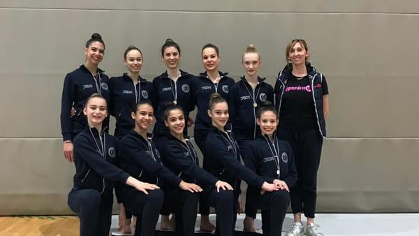 Un’emozione che si è ripetuta domenica a Formigine, in provincia di Modena, durante la fase regionale sia per la formazione della classe Open, formata da ginnaste senior con l'esercizio con le 5 palle, sia per la formazione della classe giovanile , composta da allieve e junior con la routine con i 5 nastri. Il quintetto senior composto da Giulia Capacci, Arianna Leoni, Matilde Fantini, Silvia Muscolino , Emma Santi, e con Lucia Bellavista e Giulia Torriani pronte a dare il loro apporto in caso di necessità, primeggia grazie alla bella composizione delle tecniche Chiara Domeniconi, Nadia Sicari e Pamela Barberini, ma è grazie all’esecuzione assai precisa e sicura per il grado di preparazione attuale, senza alcuna perdita nell’arco dei 2 minuti e mezzo di esercizio che ottengono l'oro.