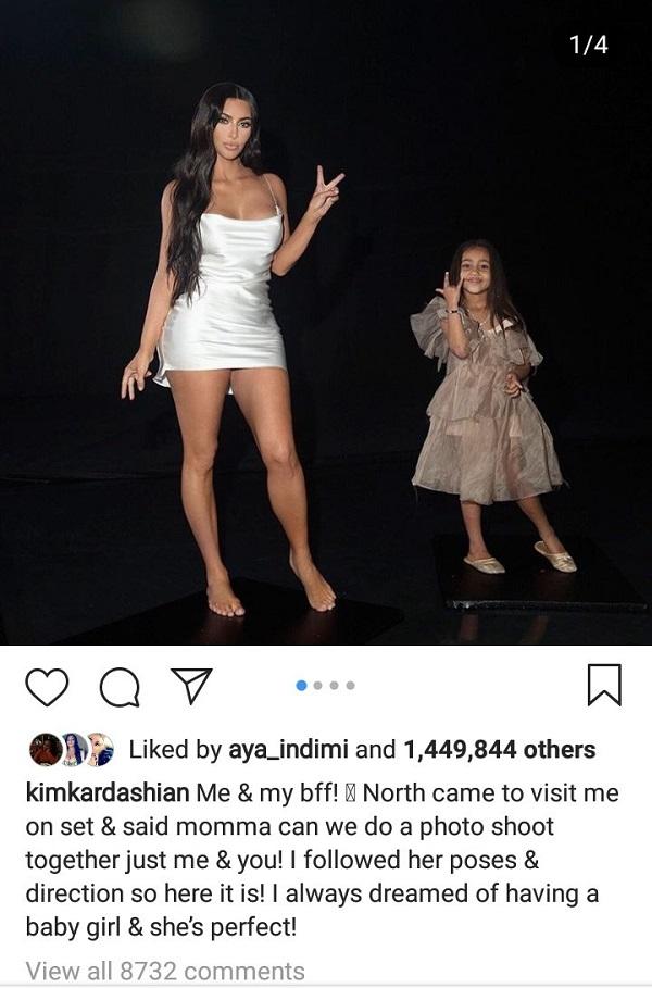 According to Kim, North, who came to visit her on set, suggested they do a photo shoot together. Direction for the poses were all North’s idea leaving Kim to follow her lead.