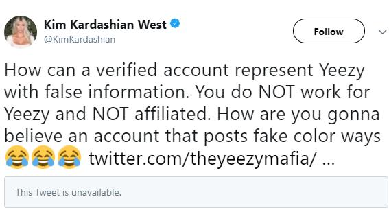Now, Kim used a series of tweets to debunk such claims and called out the Yeezy fan’s social media account as fake. The reality star tweeted: ‘How can a verified account represent Yeezy with false information. You do NOT work for Yeezy and NOT affiliated. How are you gonna believe an account that posts fake color ways.’