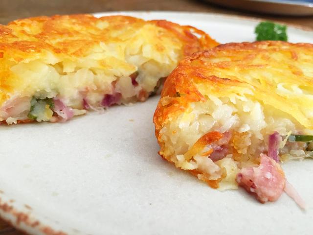 Aqueça a frigideira onde você pretende fazer o rösti e coloque azeite, espalhando bem nas laterais. Eu fiquei com medo de grudar e por isso cobri o fundinho com azeite.