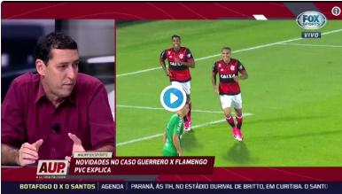 "Os exames não constataram lesão, então o Guerrero ficou de fora desses últimos jogos porque ele não queria fazer o sétimo jogo do Brasileirão. Isso fez chegar muito no fundo do poço a relação Flamengo-Guerrero e o agente do Guerrero, que é o mesmo do Zeca (Internacional) e do Scarpa (Palmeiras). O Flamengo cogita, nessa semana, usar o artigo da lei, em caso de o jogador ser impedido de atuar por motivos de força extra-clube, o jogador ter que cumprir o período de contrato que ficou devendo, que é o caso dele. É uma lei de 2011, que nunca foi testada, e o Flamengo cogita testar essa lei, ou seja, entrar na Justiça, porque a renovação de contrato é impraticável nesse momento. A lei é a 12395/11, para que o Guerrero cumpra o contrato até dezembro. O Flamengo pode, na Justiça, ficar com vínculo até o final do ano", afirmou PVC durante o programa
