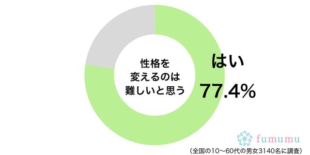 fumumu編集部では全国10〜60代の男女3,140名を対象に、性格を変えるのは難しいと思うか、調査を実施しました。