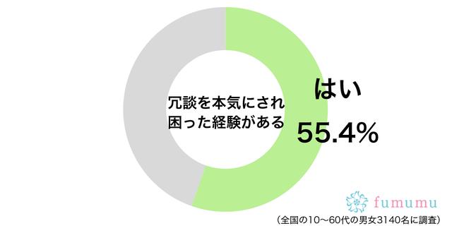 fumumu編集部では全国10〜60代の男女3,140名を対象に、冗談を本気にされ困った経験があるか、調査を実施しました。