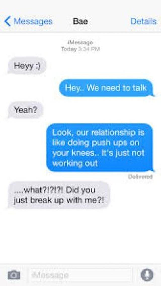 Am I the only one that thinks doing push-ups on their knees is still a workout though? My arms feel like Jell-O either way. Anyway, the point here is that this douche here would rather tell their S/O that their relationship’s no longer working through a corny metaphor rather than just telling how they felt to their partner’s face.