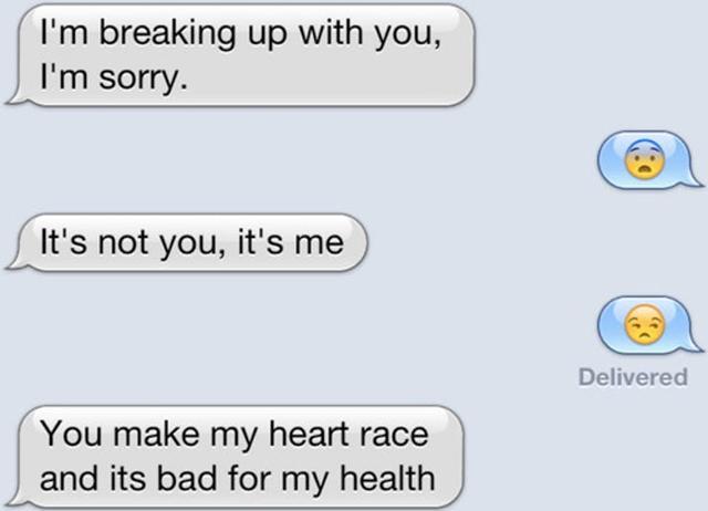 This is probably one of the worst breakup texts ever. Not because it’s heartbreaking and filled with sorrow and regret, but because it looks like there just might not be a breakup at all. Breakup officially cancelled.