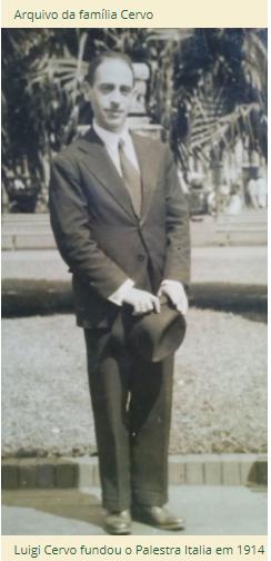 Luigi Cervo nasceu no dia 25/08/1891 na cidade de Fuscaldo, região da Calábria (Itália), e migrou para o Brasil para trabalhar nas indústrias do Conde Francisco Matarazzo – um dos homens mais ricos do país à época. Foi lá que ele reuniu os amigos com a ideia de fundar um clube que representasse a colônia italiana. O eterno patrono do Verdão faleceu em 15/05/1958, aos 66 anos.