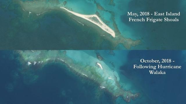 Hurricane Walaka, a category 3 storm which struck many islands in the Pacific in early October, not only caused huge amounts of damage to human settlements, but also left its mark on the Earth itself. East Island, "second-largest islet in French Frigate Shoals," seems to have been completely wiped off the map by the hurricane, causing irreparable harm to the local ecosystem.