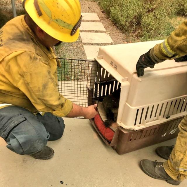 As the Carr wildfire blazed across Northern California's Shasta Valley region, Grass Valley firefighters stumbled upon a pair of survivors huddled together in the doorway of a home.