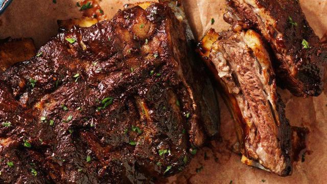 - 3 ½ lb beef back ribs, cut into single-bone portions and trimmed 1.75 kg