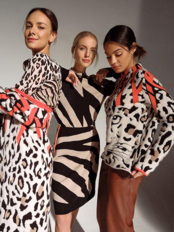 Wenn auf ein Fashion-Brand Verlass ist, sollten wir nach kuscheligen Strickteilen Ausschau halten, die mit besonderen Musterungen und Schnitten das gewisse Etwas erhalten, dann ist es Marc Cain. Auch mit seiner tierischen Frühjahrskollektion wird das deutsche Modebrand diesem Ruf gerecht und bietet damit höchste Qualität in schönster, modischer Form an. Die weiche Wolle, aus der die Trendteile des Modekonzerns gearbeitet sind, wurden zu 100 Prozent in Deutschland hergestellt und mit einer speziellen 3D-Strick-Technik gestrickt, die auf einem technologischen Standard funktioniert, der störende Nähte zur Vergangenheit macht. Dabei sind es kuschelige Cardigans, tierische Pullover mit farblichen Akzenten oder ein Ensemble aus einem Rock und einem Oberteil, welches mit einer eleganten Makro-Zebra-Musterung verziert wurde und im Übrigen Influencerin Leonie Hanne in Szene setzt.