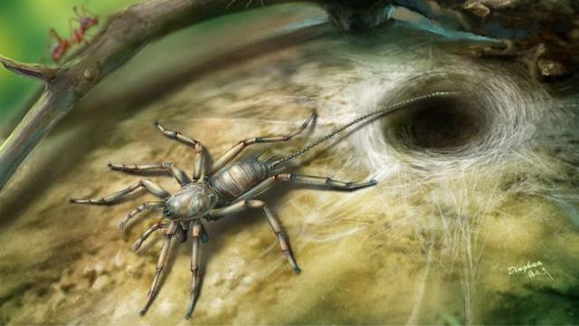 Diferentemente de seus parentes modernos, a antiga criatura tinha uma cauda. Ela pertence à classe dos aracnídeos, que agrupa artrópodes como a aranha, o escorpião e o carrapato.