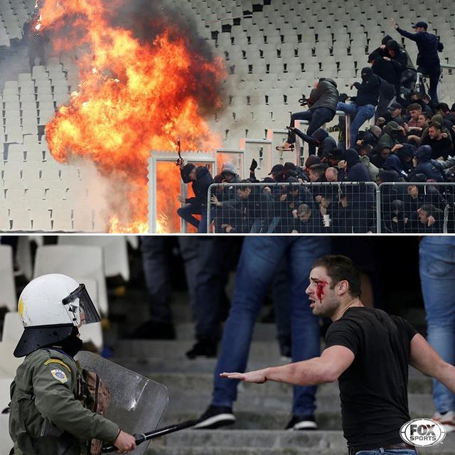 CLIMA DE GUERRA! Na Champions League, a torcida do AEK atirou um coquetel molotov na direção dos holandeses do Ajax!