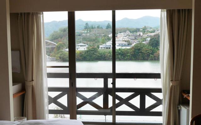 ビジネスホテル並みの価格(一泊6000円~)で、一人でも宿泊可能で、温泉が楽しめ、なんと!窓から湖が見られるんです。