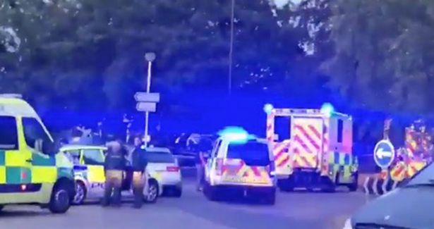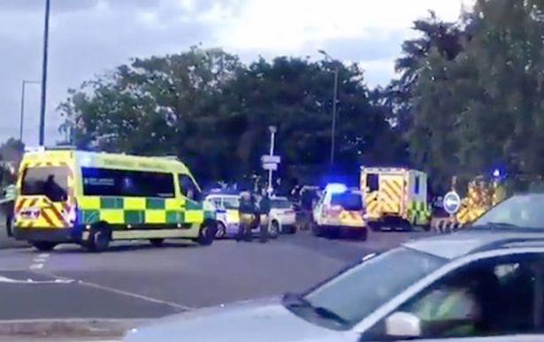 Marked and unmarked police vehicles and an ambulance were at the scene, with armed and regular police officers.