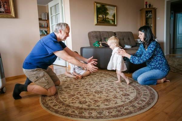 Os pais de Vasilina ajudam-na enquanto ela aprende a andar, o que é um pouco difícil sem braços para ajudar a equilibrá-la.
