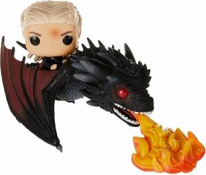 An amazing funko pop of Daenerys Targaryen riding her last living dragon, Drogon.