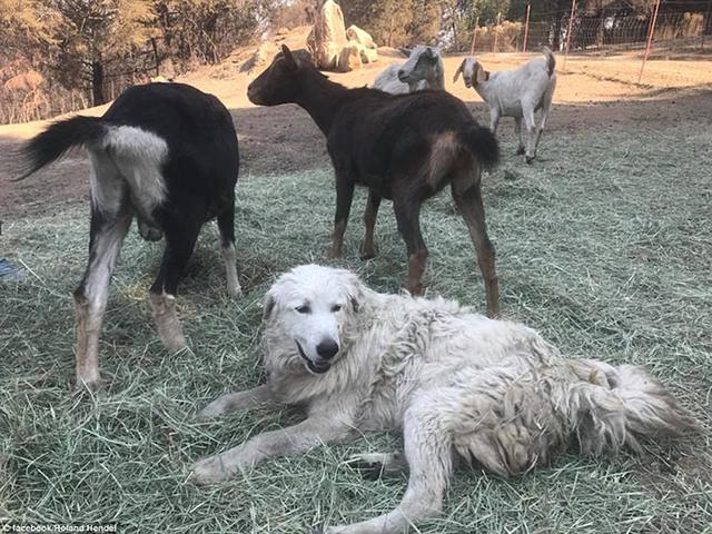 A brave goat-herding dog who refused to abandon his flock amidst the deadly California wildfires miraculously survived the flames that torched the entire property.