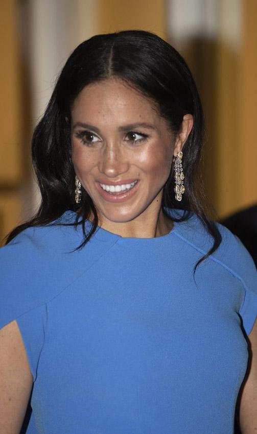 Curiosamente, el tono de azul que lo tiñe es el mismo que el de la bandera de Fiji, por lo que tanto la prensa local como los seguidores de Meghan lo han interpretado como un guiño, algo que no resultaría extraño teniendo en cuenta que se ha convertido en toda una experta en enviar mensajes a través de su vestidor. Para completar el estilismo, ha sumado maxipendientes brillantes en forma de cascada y unos sencillos salones en azul marino.