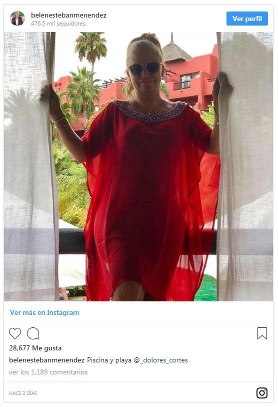 Belén Esteban está disfrutando de unas tranquilas vacaciones en Benidorm tras su inolvidable viaje a Nueva York. La colaboradora de Sálvame ha compartido varias imágenes en Instagram de su descanso en la costa blanca, un destino que escoge cada verano. En esta ocasión, se ha instalado en uno de los hoteles más lujosos de la zona, el famoso Asia Gardens, un lugar repleto de calma y sosiego con lagos, cascadas, flores de todo tipo, abundantes jardines tropicales y un extenso bosque de pinos. Además de disfrutar de la playa, Belén aprovecha a refrescarse en la piscina, siempre fiel a los diseños veraniegos de Dolores Cortés, como se observa en esta foto, donde posa con un kaftán rojo de la firma, disponible en la web por 27,45 euros.