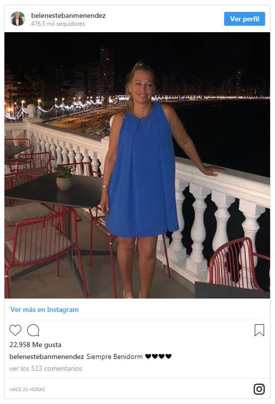 Cuando cae la noche, la televisiva cambia el biquini por favorecedores vestidos para recorrer el municipio y cenar en una de las terrazas del mirador, mostrando las increíbles vistas de la playa de Levante. "Siempre Benidorm", publicó Belén junto a esta foto y numerosos iconos en forma de corazón.