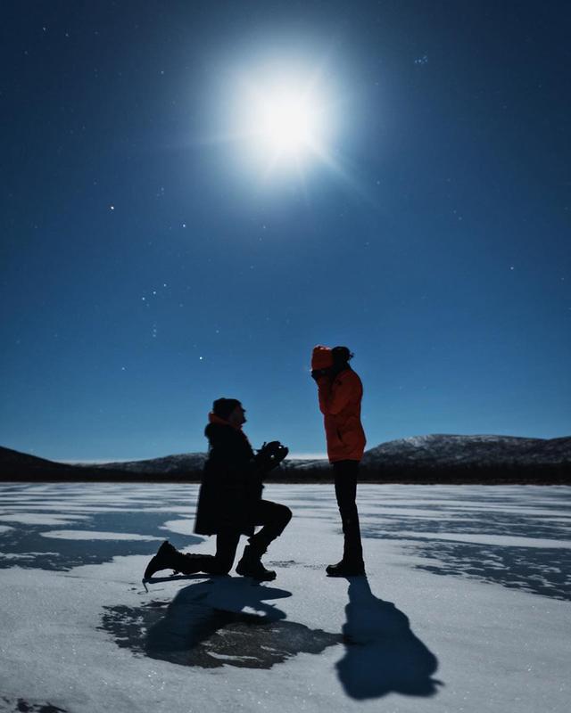 Joshepine Skriver vivió uno de los momentos más emotivos de su vida este año desde la fría Finlandia. Tras varios años de noviazgo, la modelo danesa, de 25 años, se comprometió hace pocos días con el cantante estadounidense Alexander DeLeon, también conocido como Bohnes, líder del grupo musical The Cab. Fue un momento único y muy curioso que quiso compartir con todos sus seguidores de Instagram, como viene siendo habitual en los últimos tiempos. Fue una fría noche de luna llena, un día 23 (su número de la suerte) y en la misma fecha en la que salió el single Aurora Borealis, la primera canción que el cantante escribió dedicada a la modelo. Una hoguera encendida en lo alto de un lago helado en algún rincón del país escandinavo, la luna como telón de fondo y chocolate caliente para aplacar las bajas temperaturas, Bohnes se arrodilló para cumplir uno de los sueños de la modelo que, sin dudarlo, pronunció el 'sí quiero'.