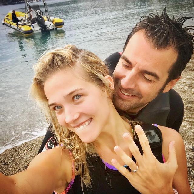 'Ayer viví una cita inesperada bajo el mar. No podía haber imaginado una pedida de mano más increíble y especial: ¡Sí, quiero!'. Con estas palabras la actriz Patricia Montero anunciaba en noviembre de 2017 que se casaba con Álex Adrover, padre de su hija Lis, de tres años de edad. La pareja, que comparte su pasión por el mar y los deportes acuáticos, protagonizó una pedida de mano de película. Tras diez años juntos, Álex tenía claro que quería pedirle matrimonio de una manera que no olvidara jamás. 'El acontecimiento fue bajo las profundidades. Todos conocéis nuestra afición por bucear y, el ¡sí, quiero! no podía tener mejor decorado que el mar', contó la propia Patricia en su blog. 'Había una cajita de madera, que parecía un pequeño tesoro, apoyada en el fondo, a unos 5 metros (...). Me acerqué y me di cuenta entonces que había un anillo. Alex sacó una pizarra y escribió: ''¿Quieres, casarte conmigo?'', relató emocionada.