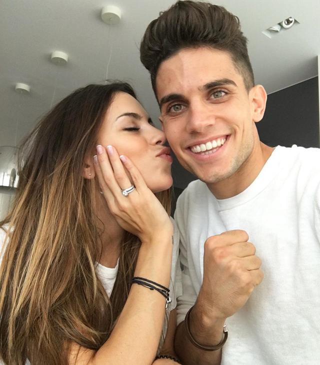 Después de dos años de noviazgo y una hija en común, Marc Bartra y Melissa Jiménez anunciaron en octubre de 2016 que habían decidido dar un paso más en su relación y se habían comprometido. Según publicó el diario Sport, Marc Bartra pensó en todos los detalles para que ese momento fuera inolvidable para su futura mujer. A pesar de que la pareja había comenzado una nueva vida en Alemania, la petición de matrimonio tuvo lugar en Barcelona. El futbolista debía estar entrenando con su equipo, el Borussia Dortmund, pero pudo hacer una escapada para dejar con la boca abierta a su chica, que no le esperaba en la Ciudad Condal. Melissa había acudido 'engañada' a ver una película de estreno en Barcelona. Un estreno que tuvo que esperar, ya que tal y como señala el citado medio, en el cine comenzaron a poner románticas imágenes de la pareja. Después, el futbolilsta aparecía en el cine para pedirle matrimonio.