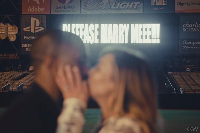 Si hay alguien que pasará a la historia por tener una pedida de mano capaz de eclipsar a todas laas demás esa es la de Kim Kardashian y Kanye West. Por el eco que tuvo la relación después, pero también por el despliegue de medios del rapero, que encargó un anillo customizado a la joyera de los famosos, Lorraine Schwartz, con un diamante de 15 quilates perfecto en claridad y pureza, y alquiló el estadio de béisbol de San Francisco el día del 33 cumpleaños de la socialité, proyectando las palabras '¡POR FAVOR, CÁSATE CONMIGO!' en una de las macropantallas LED.