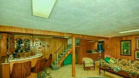 Quem nunca sonhou em ter seu próprio bar no porão? Mesmo aqui, a mulher fez um trabalho perfeito. Embora o design pareça muito diferente do resto da casa, não consigo pensar em ninguém que diga não para uma bebida ou duas aqui.