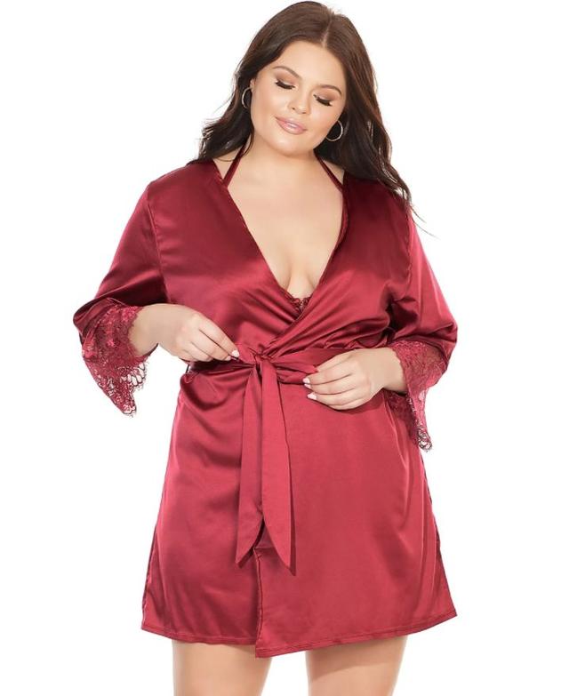25 Flora by Flora Nikrooz Plus Size Lace-Trim Wrap Robe