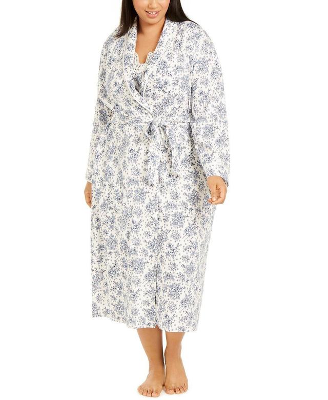 23 Charter Club Plus Size Cotton Floral-Print Long Wrap Robe