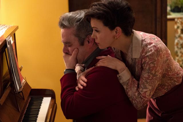Of course, the film would be far less effective without its intimate moments too. One of the most poignant scenes depicts Garland meeting a gay couple, Dan and Stan (played by Andy Nyman and Daniel Cerqueira), who wait for their idol to exit the stage door after a concert. Through an unlikely series of events, Garland winds up at the couple’s apartment, where a night of revelry ends with an emotional discussion of how the two men find comfort in her music and films while maintaining their relationship amid legal and social persecution.