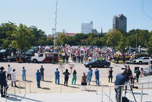 Health care workers in North Carolina on Tuesday held a counterprotest against yet another “ReOpen NC” rally in the state capital.