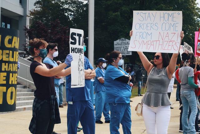 These protesters carried signs promoting debunked conspiracy theories about COVID-19, which has already infected over 1 million people and killed over 57,000 in the U.S. alone. There have been over 9,500 reported cases of COVID-19 in North Carolina, according to state health officials, resulting in over 340 deaths.