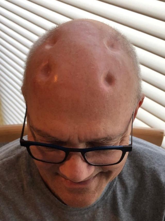 Yet, the surgery left me with four significant “holes” (dents) in my skull ― a freakish sort of look on my bald head that is a bit overwhelming for me. It is this radical change in my appearance that has created profound feelings of insecurity.