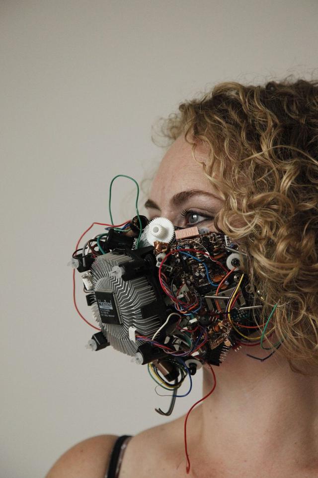 Key to the display – hosted virtually by London’s M1 Fine Art Gallery – is a mask composed of reclaimed computer parts priced at more than £1,000.