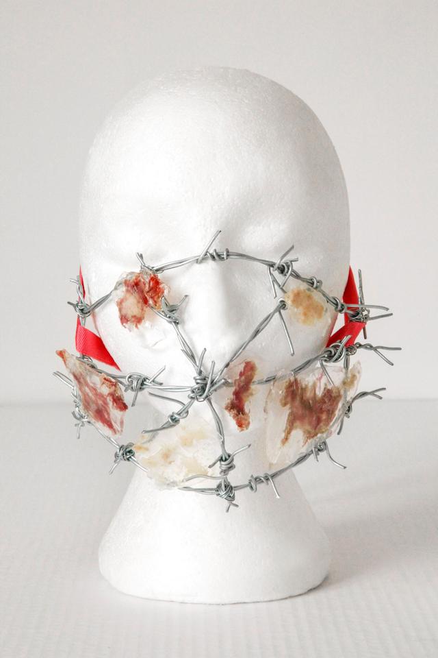 Morris-Winmill created the masks during lockdown as part of her ongoing exploration into the effects of human consumption on the environment.