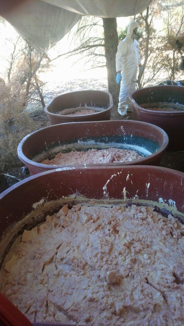 Esto ya está listo, solo falta que se seque, tiene una consistencia como de pasta", explicó un experto en manejo de sustancias del Ejército Mexicano.