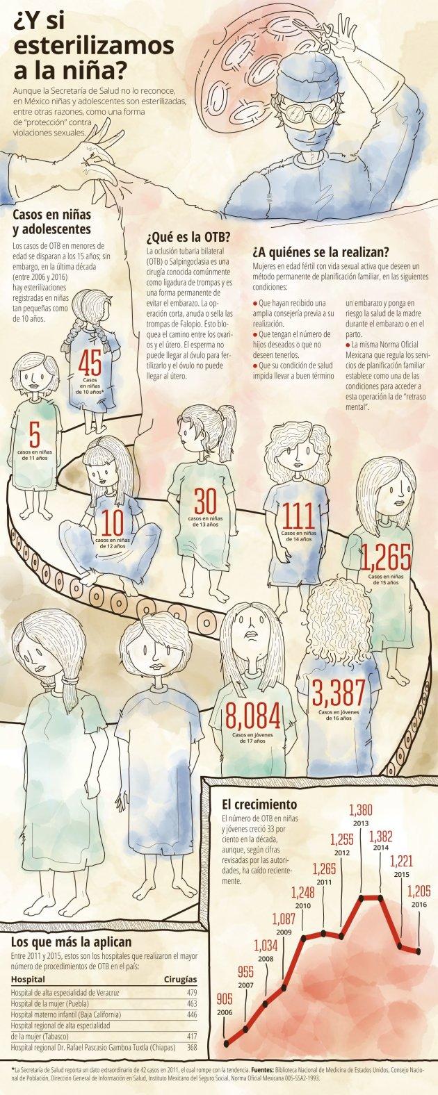A las solicitudes de transparencia, la Secretaría de Salud federal respondió que no tiene obligación de llevar registro, pero estados como Baja California, Jalisco, Puebla y Tabasco reconocieron que el "retraso mental" es un escenario para realizar esas operaciones; solo como ejemplo: en el Hospital Gustavo A. Rovirosa Pérez de Tabasco indicaron que, de 2010 a 2015, fueron esterilizadas tres menores por esta razón. Una serie de entrevistas con médicos, instituciones y activistas, y la revisión de recomendaciones de organismos defensores de derechos humanos, revelan que es un procedimiento usual.