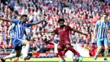 Liverpool's front three of Salah, Sadio Mane and Roberto Firmino have scored a record 29 goals this season, eclipsing the previous best of 28 set by Ronaldo, Gareth Bale and Karim Benzema in 2013/14 for Real Madrid.