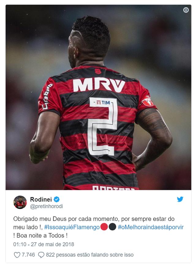 "Totalmente falso. Volto a repetir, querem tumultuar o nosso ambiente. Custo a acreditar nisso. É totalmente falso. O Rodinei é meu parceiro, um amigo que tenho no Flamengo há 3 anos. Fiquei até triste de ter cobrado dele no campo",