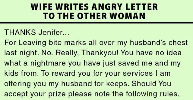 This wife, whose name is undisclosed, had something way better in mind than just moving on. What did she was that she wrote a letter to the ‘other woman.’