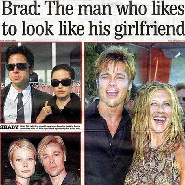 Girl photographer Sarah McGonagall shared the article and photos found on the social network Twitter, and wrote that "now she can not stop thinking about it." McGonagall published a series of photos of Brad Pitt with different girls whom the actor met. In all the pictures, you can see that Pitt looks like he's copying the looks of his girlfriend, down to his hairstyle, clothes, glasses and even a smile. This fact excited many of the fans of the actor who confessed that they never thought about such things.