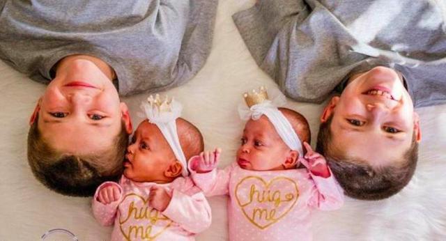 Tendo dois pares de gêmeos já é extremamente raro, há uma chance de 70.000 que isso acontece aproximadamente.