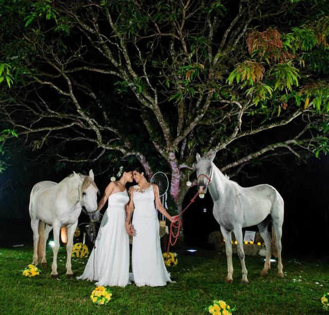 Juntas há dois anos, a bailarina pediu Camila em noivado durante um passeio romântico, no Rio de Janeiro, em janeiro de 2017. Apaixonadas por natureza, as noivas realizaram o sonho de fazer um casamento no campo: