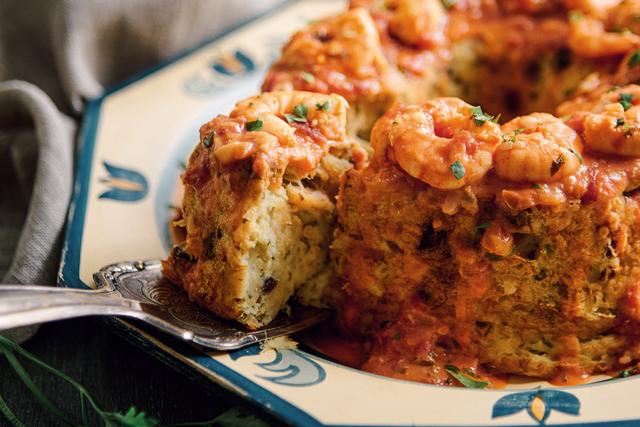 Transfira para uma fôrma média com furo no meio, untada com manteiga e polvilhada com farinha.