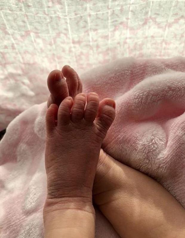 Behati Prinsloo mostrou no Instagram nesta quarta-feira (21) uma foto dos pés de sua segunda filha com Adam Levine. "Gio Grace Levine 2/15/18. Ela tem os dedos do pai", escreveu ela na legenda da imagem. Os dois já são pais de Dusty Rose, de 1 ano de idade.