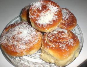 8Coloque em formas para bolo e deixa mais uns 20 min crescendo e então asse em forno pré-aquecido 180º por cerca de 20 min ou ate dourar, depois de assadas coloque a cobertura .